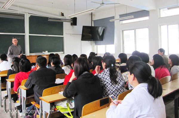 4月27日下午,Fuluider George在苏州市卫生职业技术学院A303教室,给学生上了一堂专业英语课。Fuluider George,美国国籍,苏大外聘老师,有着非常丰富的英语教学经验。
