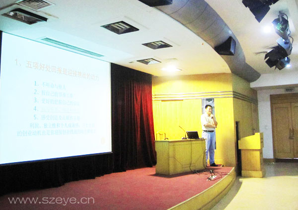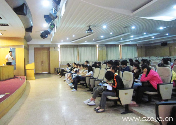 5月21日上午,上海镜美眼镜公司专业培训员刘亚威老师在苏州卫生职业技术学院第一报告厅内,给我院08级学生开展关于“小企业的创业与营销”的讲座。