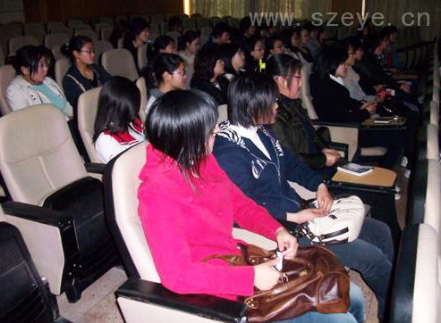 3月20日中午眼视光专业05级和07级同学参加强生相关培训,主讲张琼老师,课题关于紫外线对人眼的伤害。