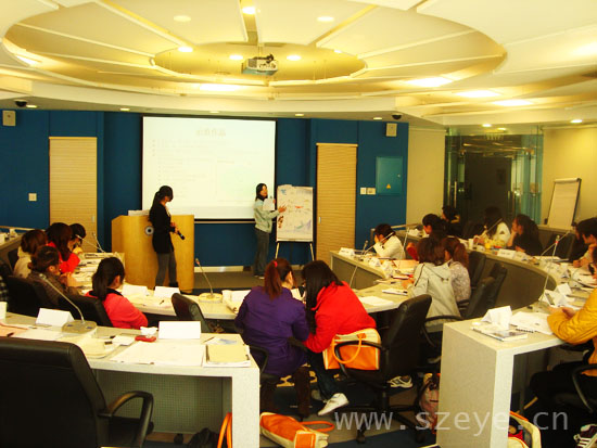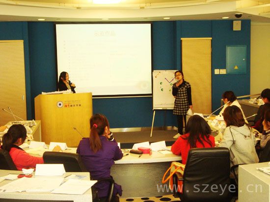 两天的培训内容十分丰富,参观了视光学苑,并接受了相关的专业知识的学习:角膜接触镜概述与设计,隐形眼镜的规范验配、常见的眼部并发症、消费者常见问题汇总讨论、中国眼镜行业的现状和人才需求等知识。