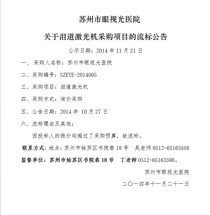 泪道激光机流标公告