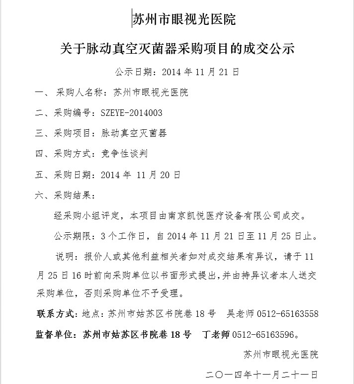 脉动真空灭菌器成交公示