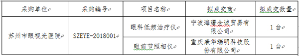 关于眼前节照相仪、眼科低频治疗仪的成交公示