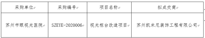 关于视光柜台改造项目的成交公示
